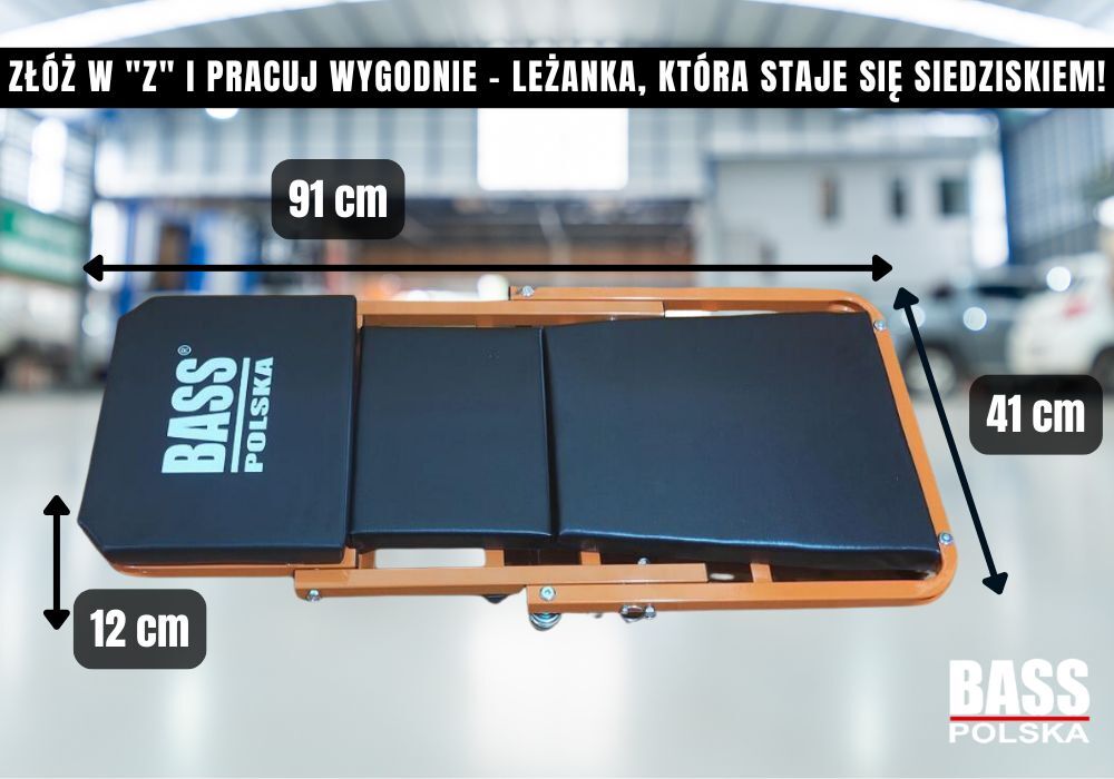 Toode on varustatud kuue kummirattaga, mis tagavad sujuva liikumise sõiduki all töötades. Tugev, tugevdatud raam garanteerib stabiilsuse ja vastupidavuse, samas kui pehme, polster tagab maksimaalse mugavuse. Lamamistooli ergonoomiline kuju toetab optimaalset kehaasendit, vähendades selgroo pinget.